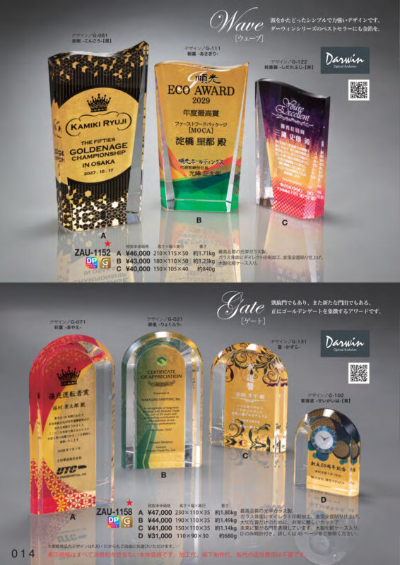 トロフィー光学ガラス-トロフィー金箔光学ガラス-楯